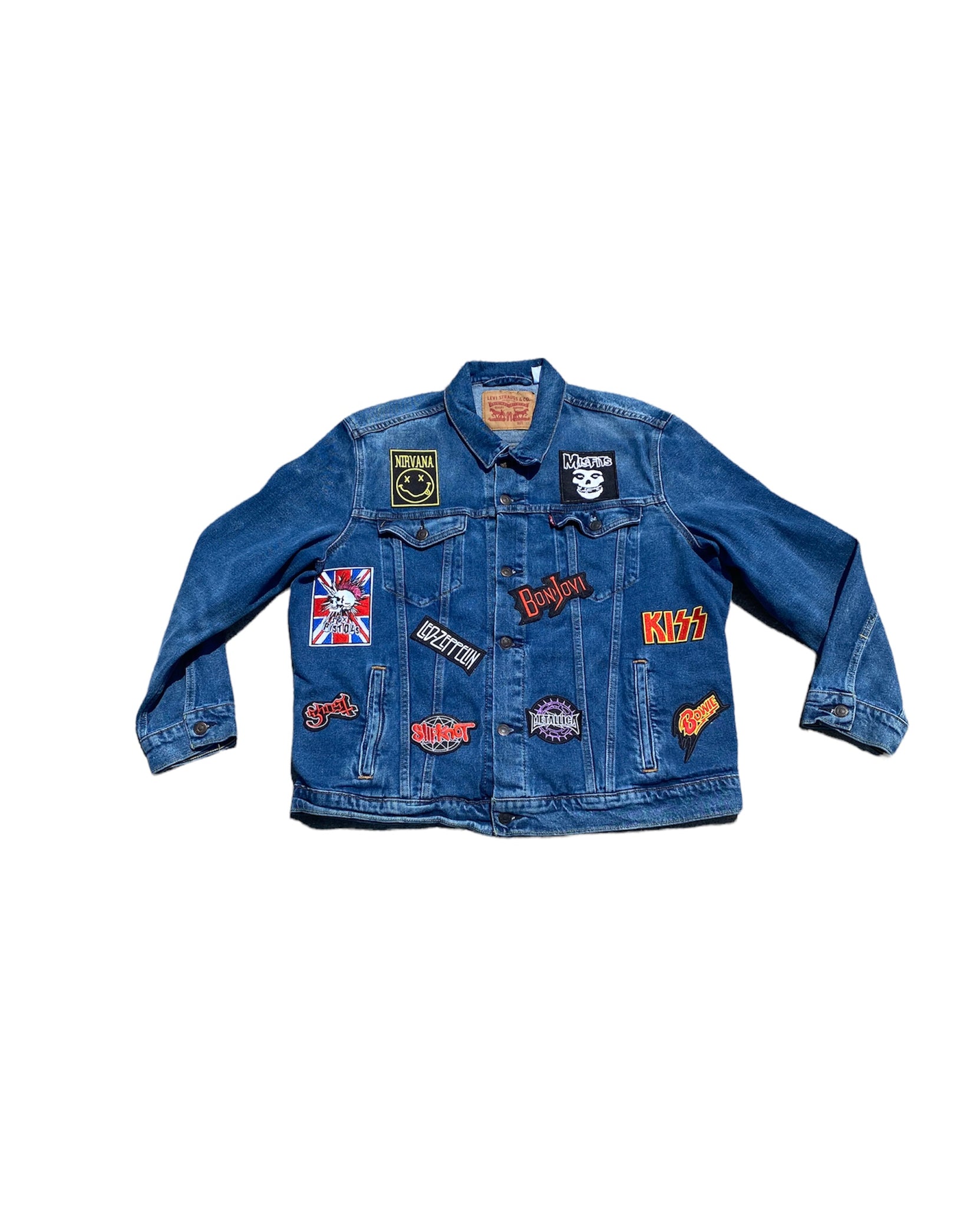 One Of A Kind Custom Vintage Denim Jacket Embellished With Band Patches. Size Men’s/Unisex Large.